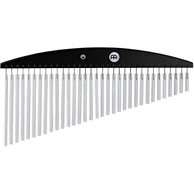 The chime has 33 silver-anodized bars for a full sound spectrum. The curved black truss beam and the silver bar chimes look great in any percussion setup.