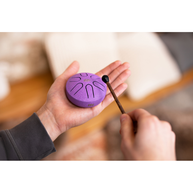 The Meinl Sonic Energy Pocket Steel Tongue Drum is suitable for any music lover, teacher, or sound therapist. It has a very compact size, making it ideal for on-the-go use. Whether in the studio, in the classroom, in the office, or on the coffee table, this drum with a diameter of only 3 inches (7.6 cm) can be played by anyone, anywhere, regardless of skill. Thanks to the pre-tuned scale, there are no wrong notes to play. The sound is joyful and soothing.