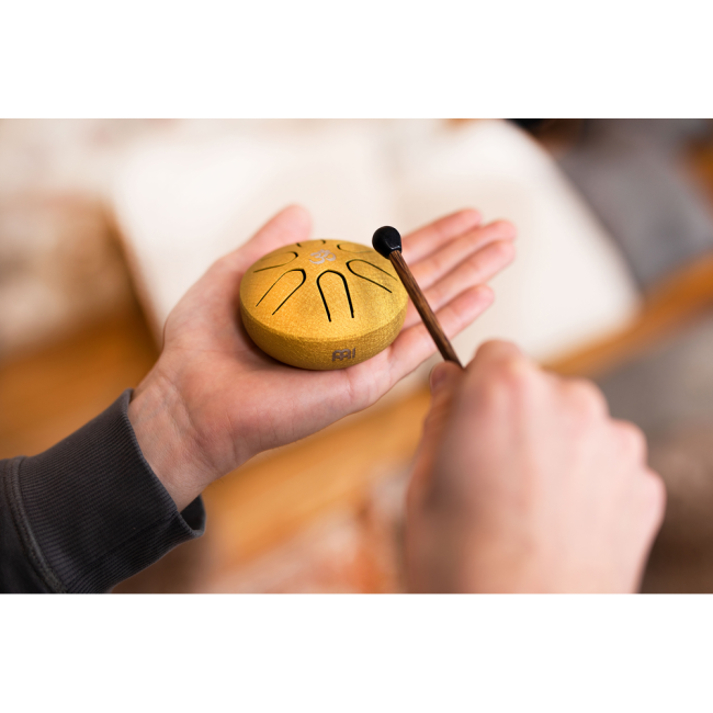 The Meinl Sonic Energy Pocket Steel Tongue Drum is suitable for any music lover, teacher, or sound therapist. It has a very compact size, making it ideal for on-the-go use. Whether in the studio, in the classroom, in the office, or on the coffee table, this drum with a diameter of only 3 inches (7.6 cm) can be played by anyone, anywhere, regardless of skill. Thanks to the pre-tuned scale, there are no wrong notes to play. The sound is joyful and soothing.